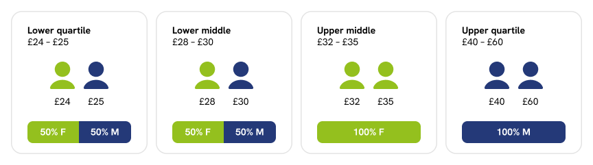 | Pay quartiles | The percentage of men and women in each quarter of your pay distribution (lowest, lower middle, upper middle, highest) |