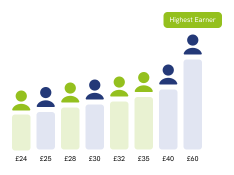 Notice how the single £60 earner stands out—this will skew the mean significantly but won’t affect the median. Switch to the next tabs to see why this matters.